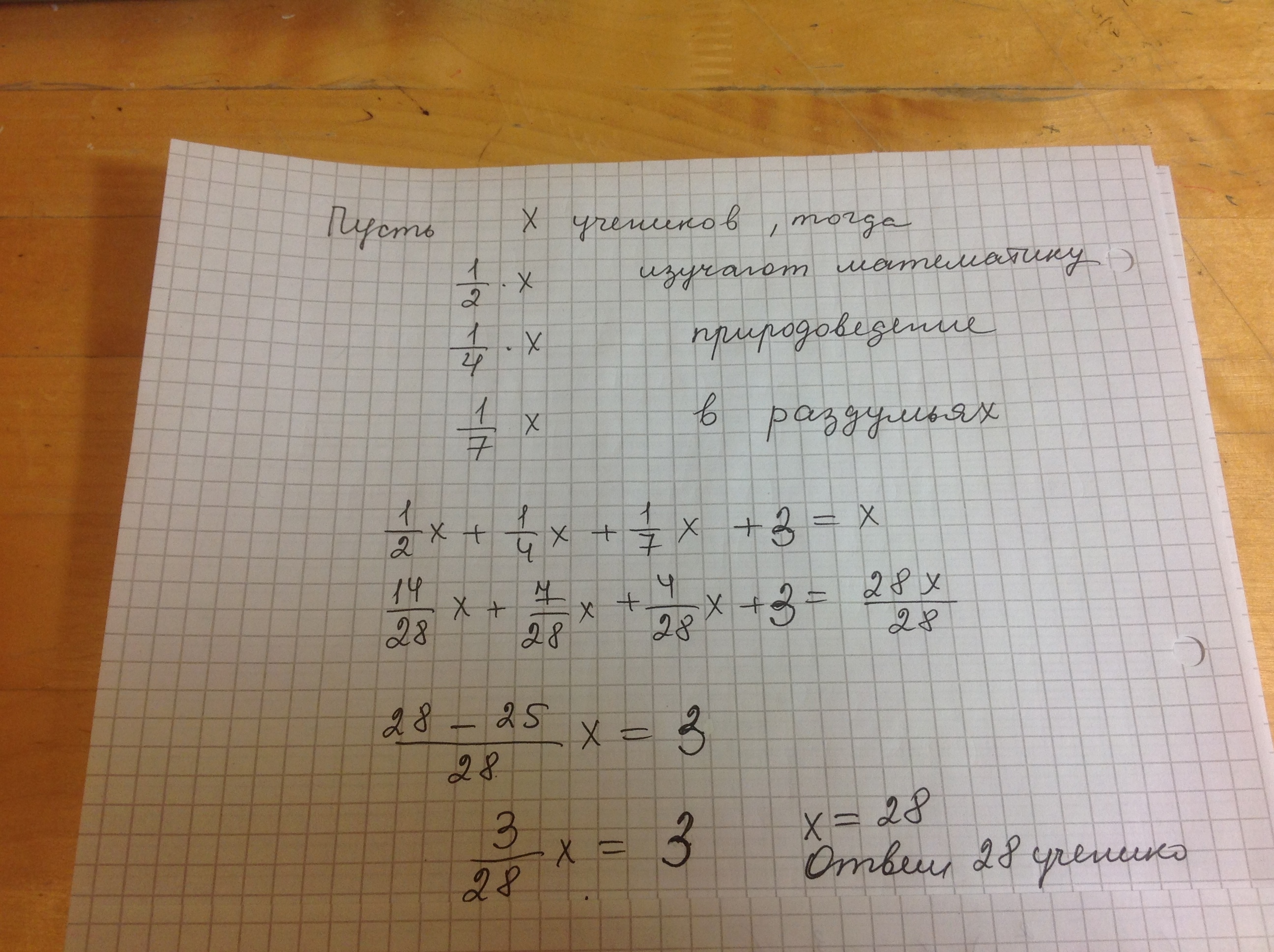 у древнегреческого математика Пифагора спросили Сколько у вас учеников он ответил половина моих учеников изучает математику четверть природоведения 1 7 проводит время в раздумьях А 3 оставшихся является девочками Сколько учеников было у Пифагора