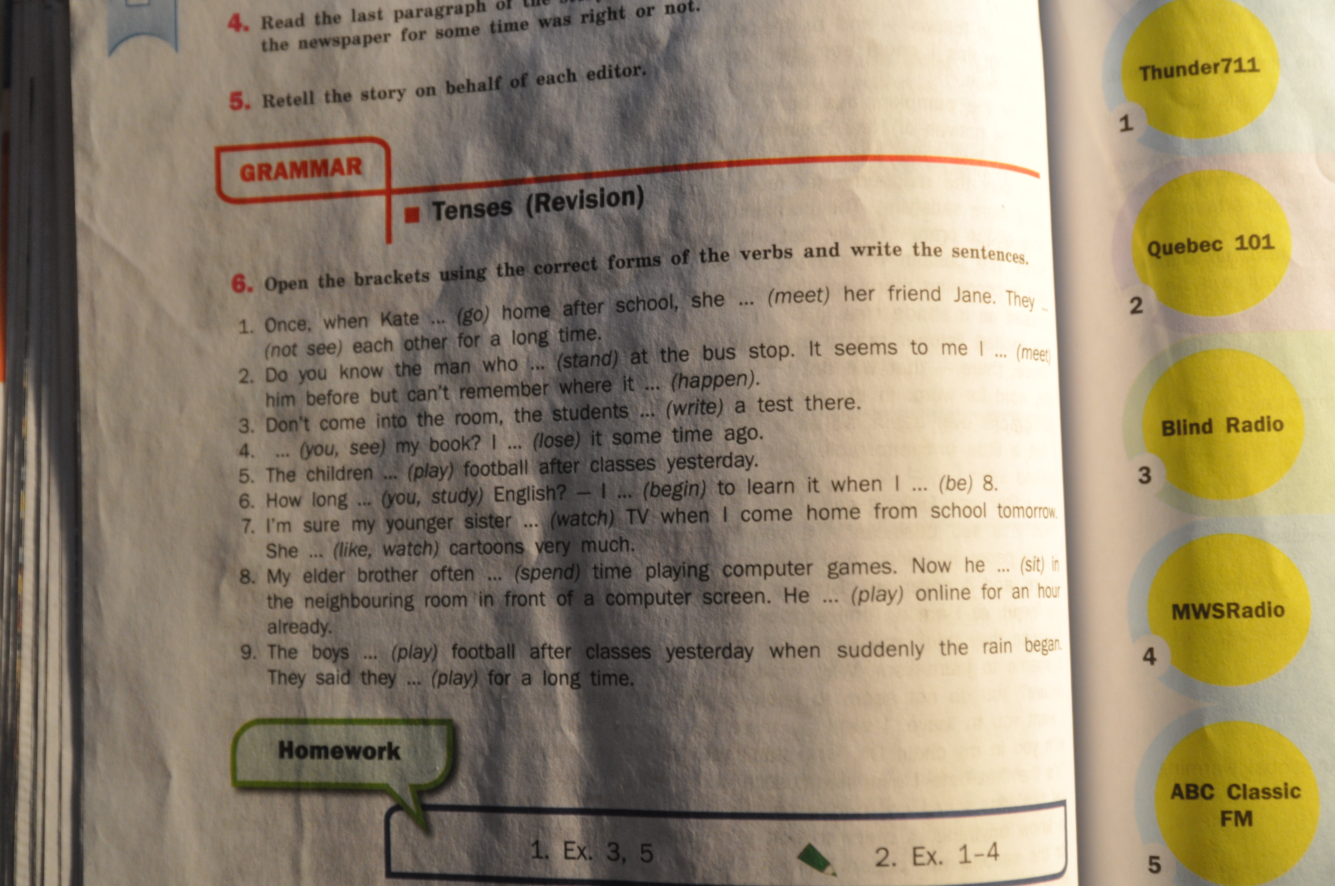 8. spends, is sitting, has been playing.