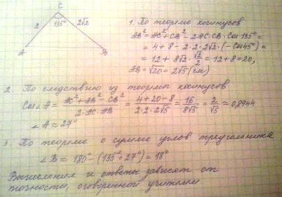 AB²=4+8-2*2*2√2*(-1/√2)