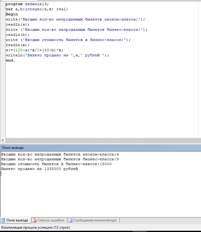 write ('Вводим кол-во непроданных билетов бизнес-класса:');