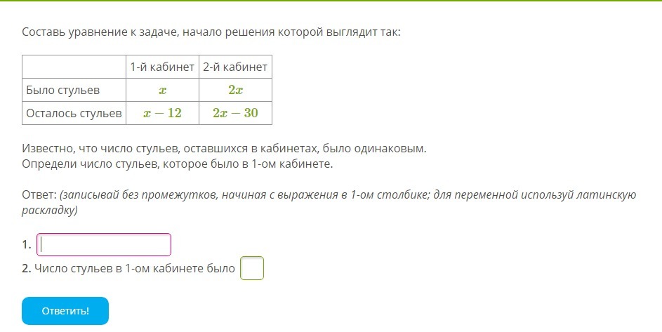Известно, что число стульев, оставшихся в кабинетах, было одинаковым.