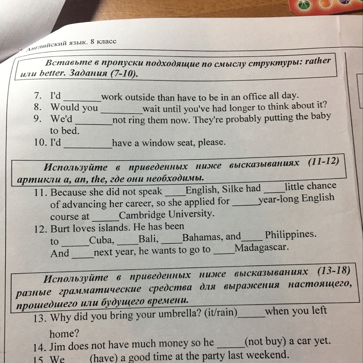 12 Burt loves islands. He has been to _ Cuba, _ Bali, THE Bahamas and THE Philippines. And _ next year, he wants to go to _ Magadascar.