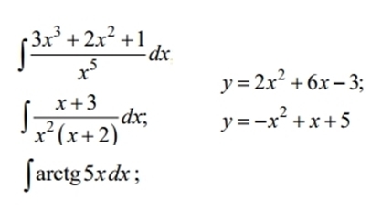 Найдите 3 непоределённых интеграла и вычислите площадь 1 фигуры, ограниченной пораболами