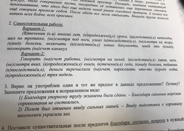 В течении многих лет, в продолжение урока, в следствии непогоды, шел по тропинке, не смотря под ноги, узнал в последствии, не смотря на жару, ввиду болезни, включить в следствие новые документы, имей это ввиду, поговорить насчет каникул