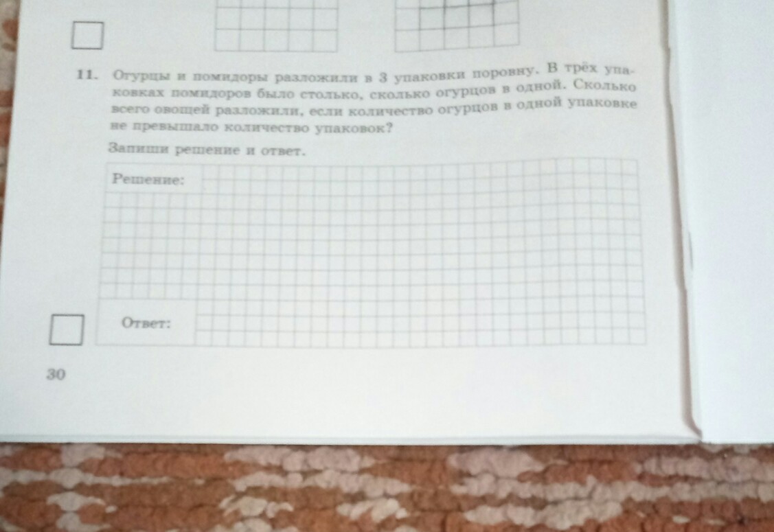 это значит что : (3ог*3уп)+3пом=12 овощей всего разложили