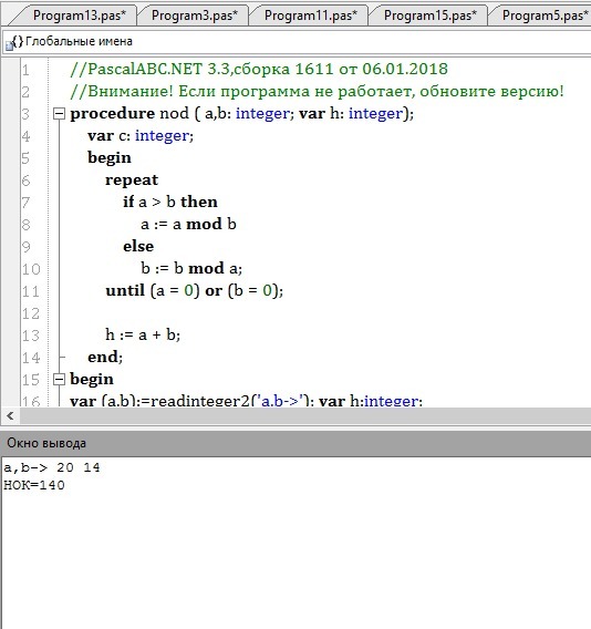 var (a,b):=readinteger2('a,b->'); var h:integer;