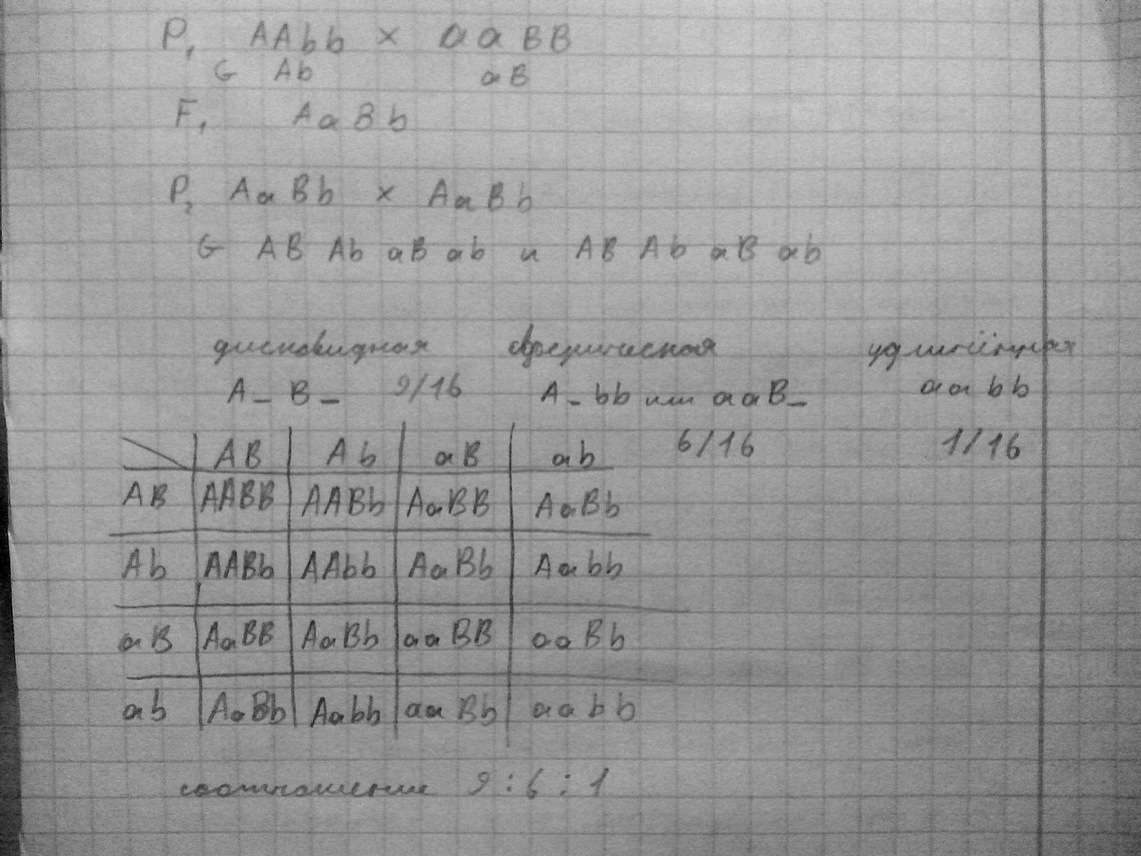 Там опечатка. Родители первого поколения написано ААBB, а судя по потомству первого поколения должно быть ААbb. Решение на фото.