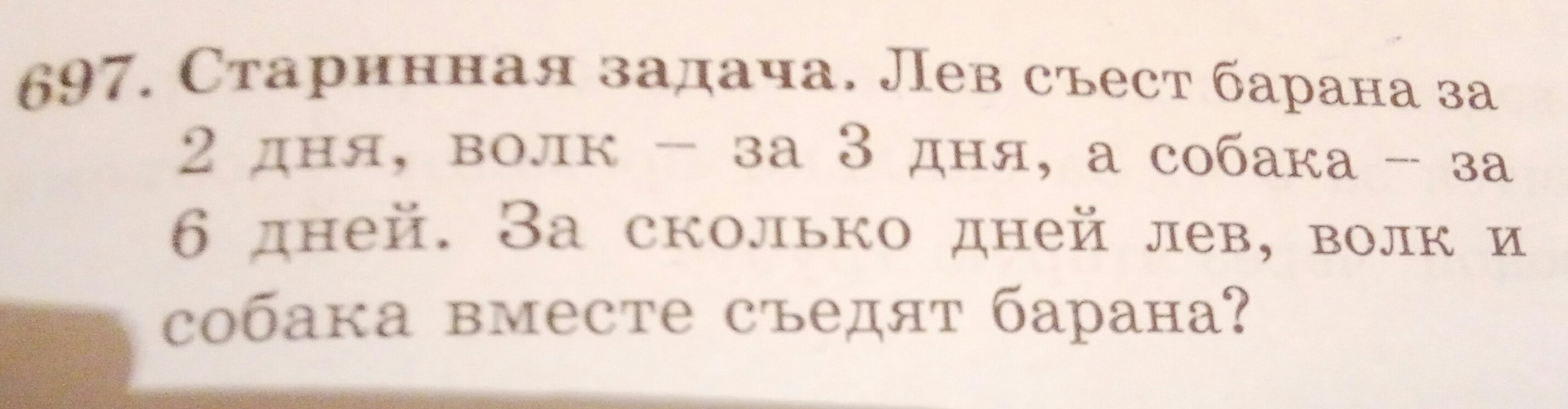 1) 1:2=1/2 часть овцы съедена за 1 день Львом.
