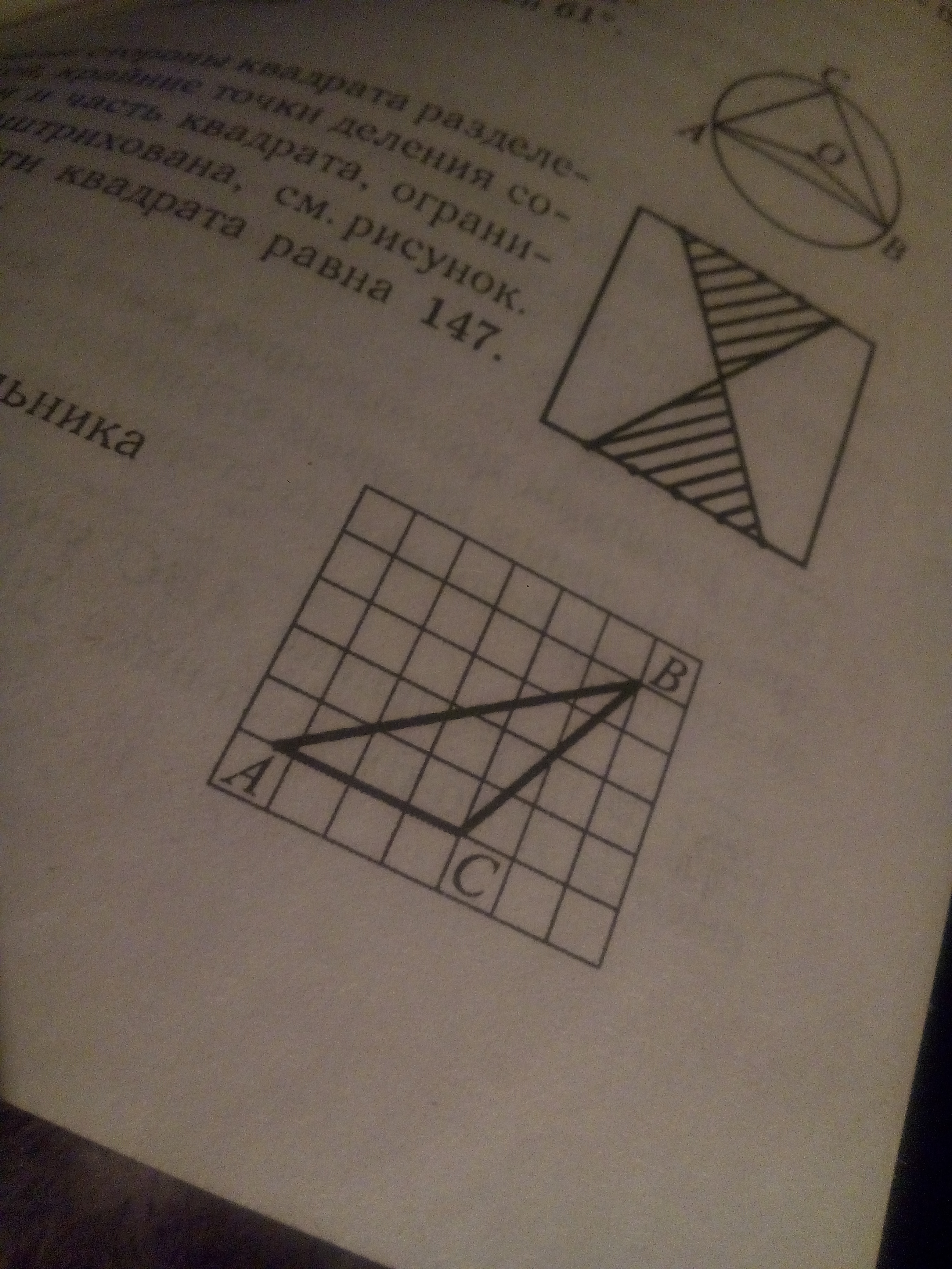 сама тока А отчётливо расположена не на пересечении линий. Зато справа вверху от неё есть точка пересечения линии АВ с линиями-границами клеток. И от этой точки к точке В - по горизонтали 4 клетки, по вертикали 3 клетки. Итого - тангенс угла САВ = 3/4