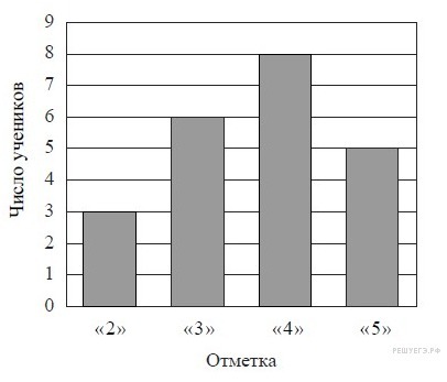 На диаграмме показаны результаты контрольной работы по математике в 6 «В» классе. По вертикальной оси указано число учеников. Сколько человек писали эту контрольную работу?