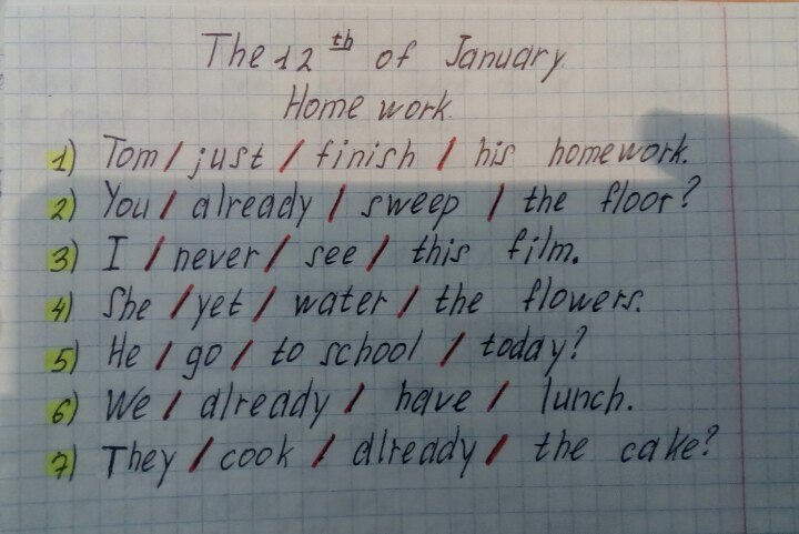 1) Tom has just finished his homework.