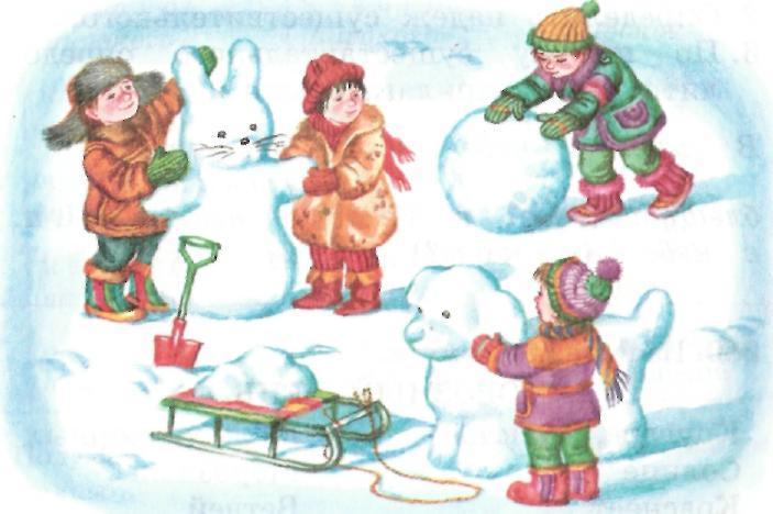 рассмотри рисунок составь и напиши рассказ можешь пользоваться опорными словами : вылепили ,удивительные , снежные,животные, словно в сказке и озаглавь рассказ .