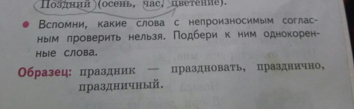 вспомни, какие слова с непроизносимым согласным проверить нельзя. подбери к ним однокоренные слова