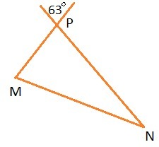 Найдите сумму величин углов M и N треугольника MNP, изображенного на рисунке.
