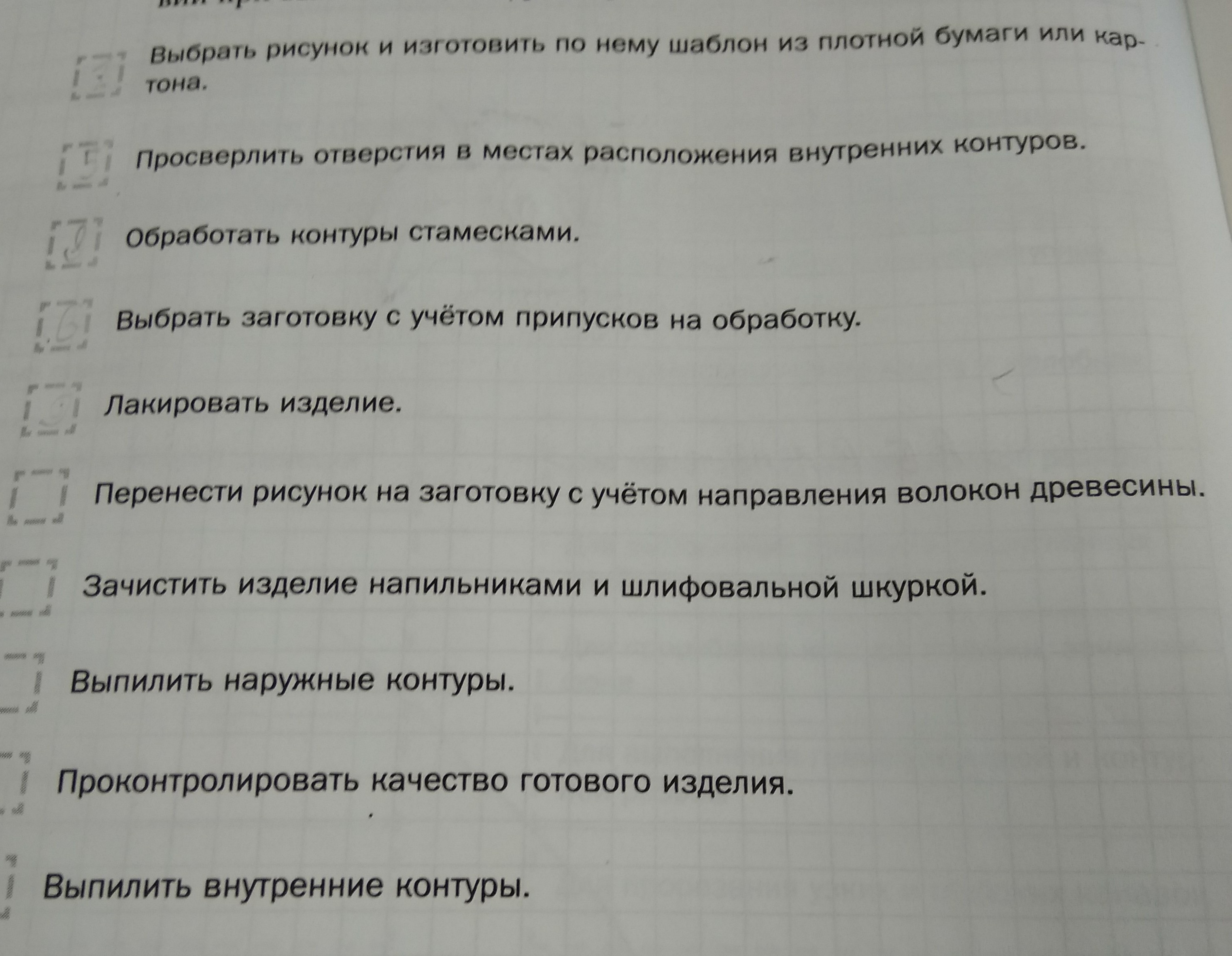 Пронумеруйте правильно последовательность выполнения действий при выполнении ажурной резьбы по дереву.