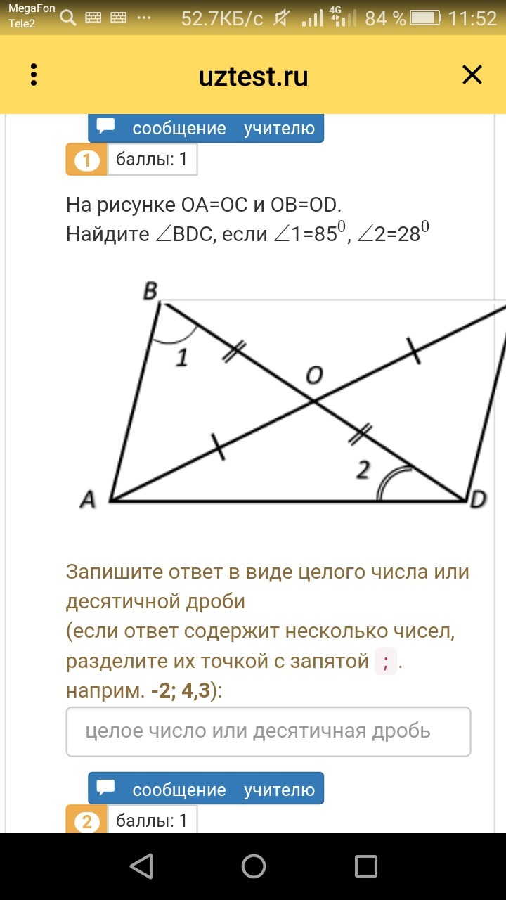 И ∠БДС = ∠1 = 85° как накрест лежищие при параллельных прямых, АБ||СД