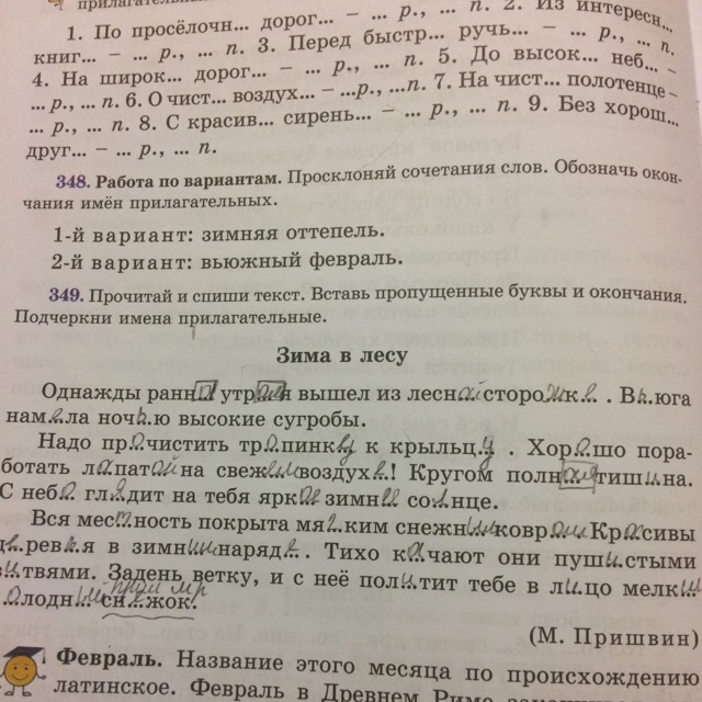 Прилагательные: лесной, высокие, свежем, полная, яркое, зимнее, мягким, снежным, зимнем, пушистыми, мелкий, холодный. Подчеркивается волнистой чертой.