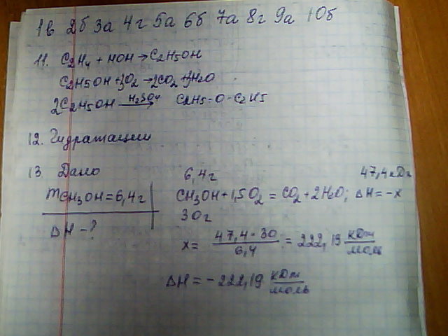 13 (10 баллов). При сгорании 6,4 г метилового спирта выделилось 47,4 кДж теплоты. Составьте термохимическое уравнение горения метанола.