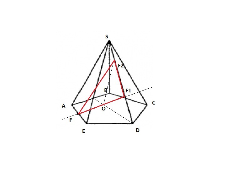 2. Постройте сечение правильной пятиугольной пирамиды SABCD плоскостью a , проходящей через середину ребра АЕ основания пирамиды параллельно плоскости SAВ.