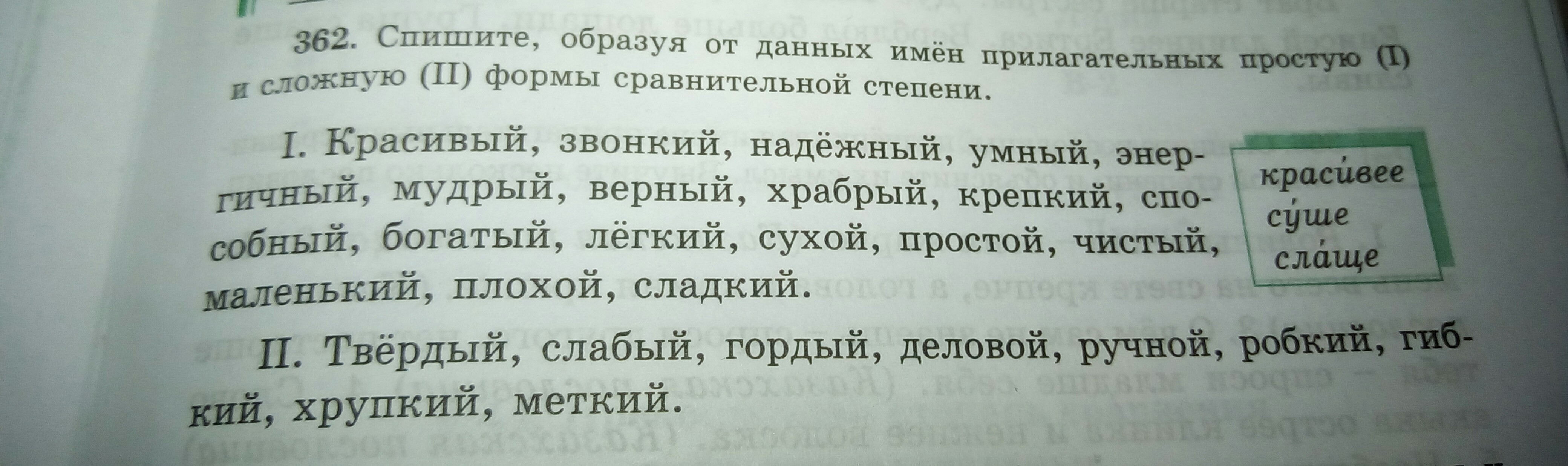 Помогите срочно :Спишите,образуя от данных имён прилагательных простую первую и сложную вторую форму сравнительной степени (1) красивый, звонкий, надёжный, умный, энергичный, мудрый, верный, Храбрый, крепкий, способный, богатый, легкий, сухой, простой, чистый, маленький, плохой, сладкий.