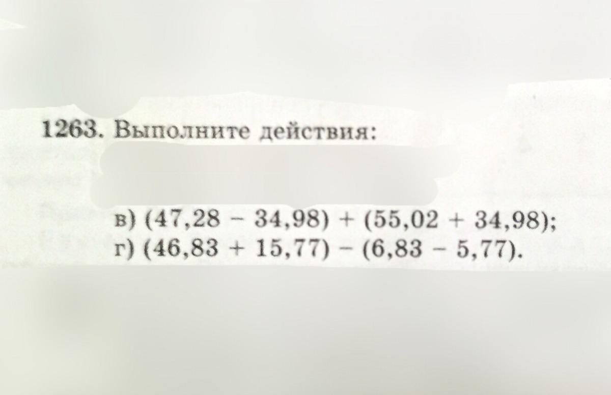 Помогите решить №1263 (В,Г). Решите пожалуйста с упращением действия.(точнее, где число повторяется. Например: (..,..-34,98)+(..,..+34,98).)