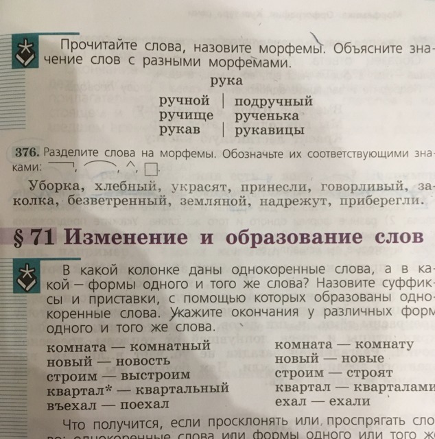 уборка убор корень к суффикс а окончание. Хлеб корень н суффикс ый окончание. у приставка крас корень ят окончание. при приставка нес корень л суффикс и окончание. говор корень л суффикс ив суффикс ый окончание. За приставка кол корень к суффикс а окончание. Без суффикс ветр коррень енн суффикс ый окончание. земл корень ян суффикс ой окончание. Над приставка реж корень ут окончание. При приставка берег корень л суффикс и окончание.