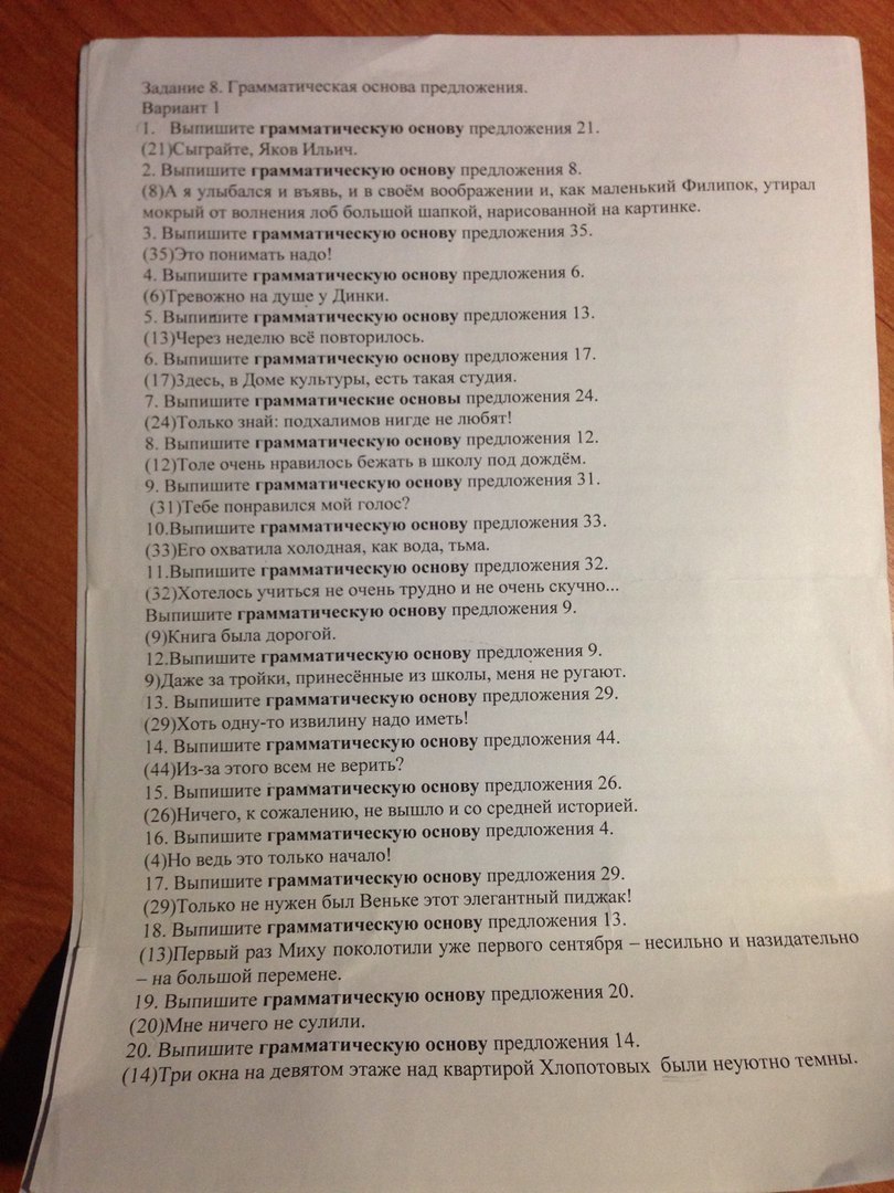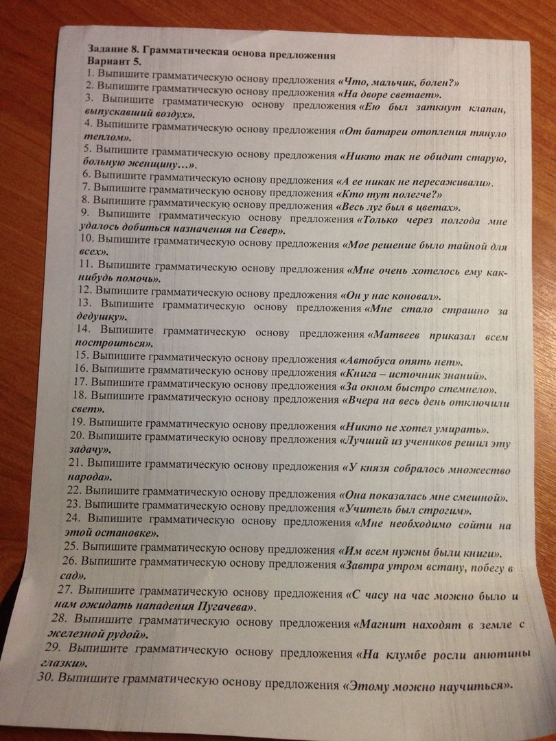 1-болен,2-светает,3-клапан был заткнут,4-тянуло,5-не обидит,6-не пересаживали,7-кто полегче,9-удалось добиться назначения,11-хотелось,13-стало страшно,14-матвеев приказал построиться,16-книга источник,17-стемнело,18-отключили,19никто не хотел умирать,26-встану,побегу,28-находят,30-можно научиться