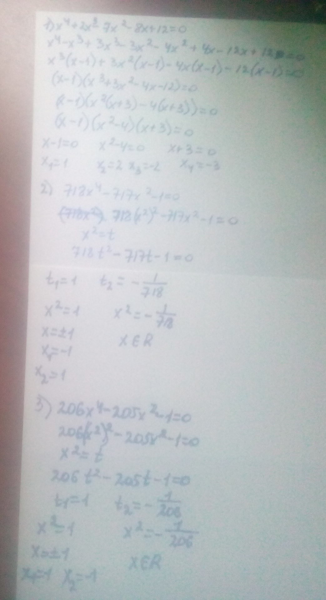 3)206x^4-205x^2-1=0