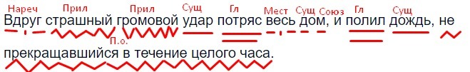 Вдруг страшный Громовой удар потряс весь дом и полил дождь не прекращавшийся в течение целого часа синтаксический разбор