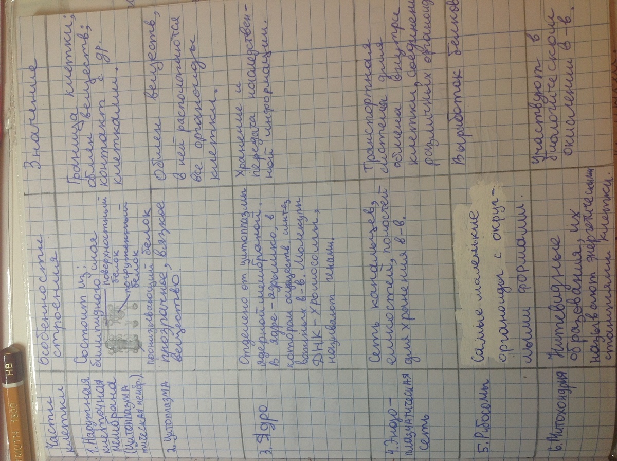 1.Название частей клетки. 2. строение. 3.Функции