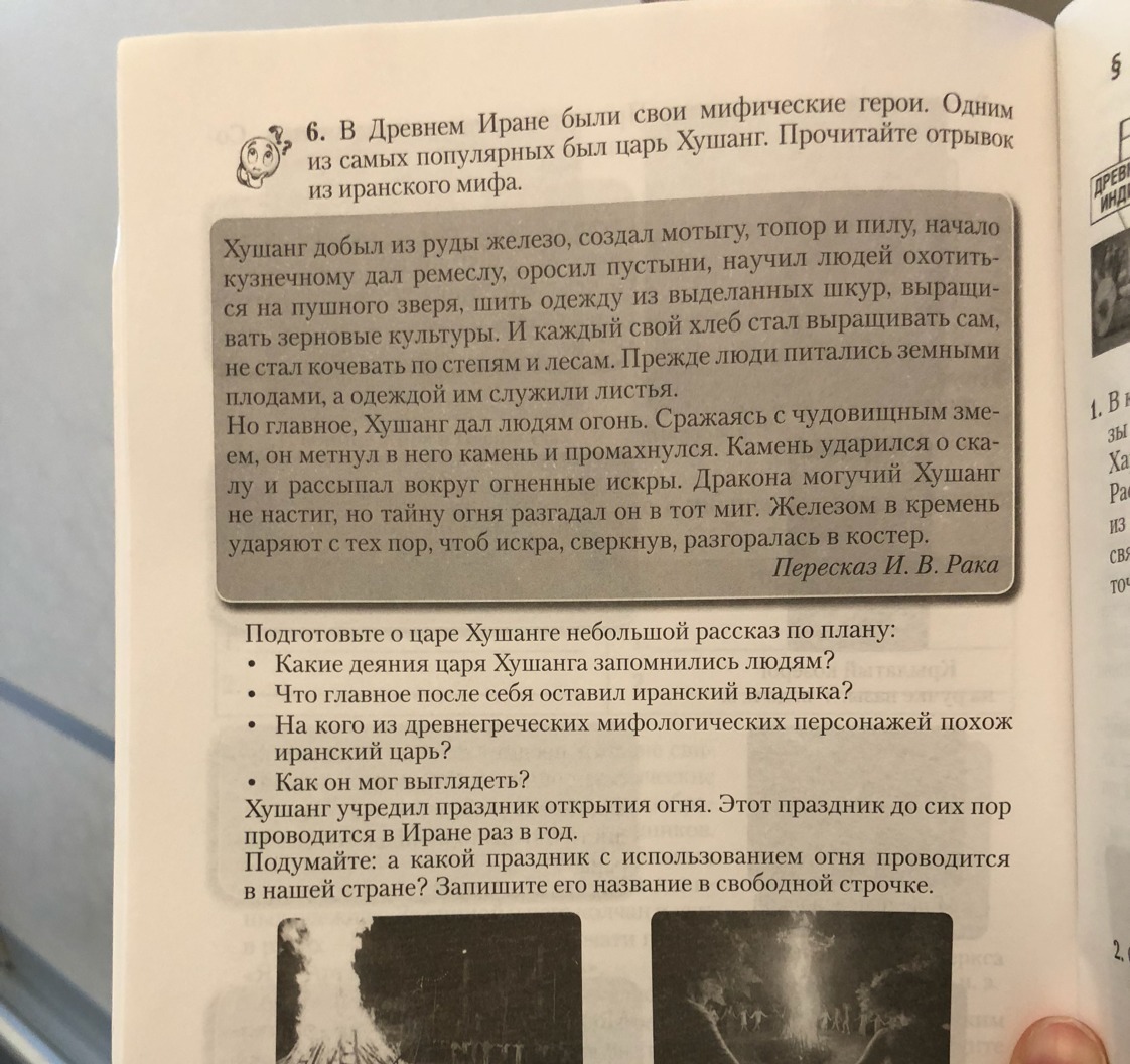 Люди запомнили Хушанга, как человека первооткрывателя. Он научил людей шить одежду,охотится на пушного зверя, выращивать зерновые культуры.