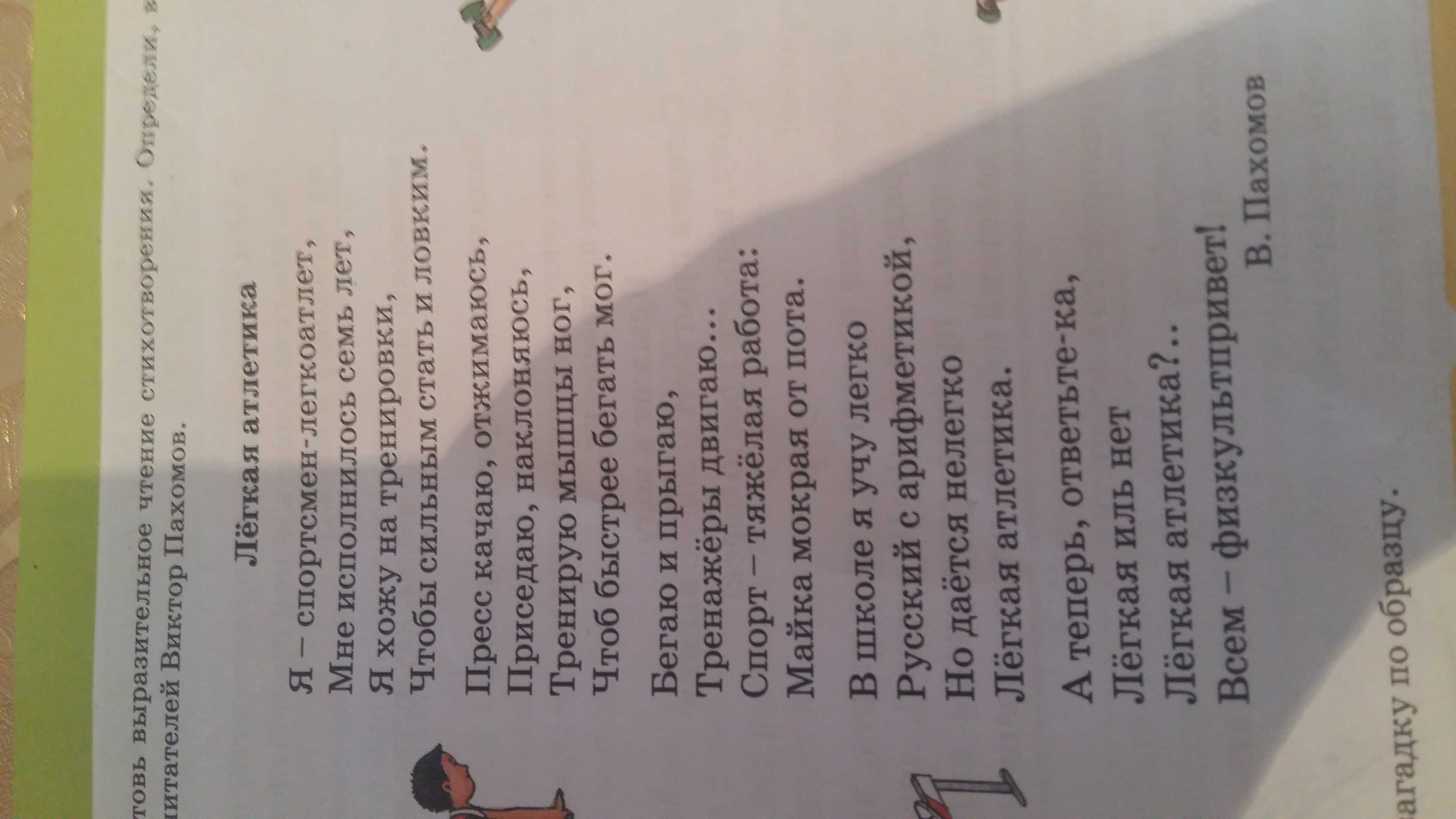 Прочитай заголовок и начало стихотворения "Легкая атлетика " В.Пахомова. Предположение , о чем будет произведение. Запиши. Сравни свое предположение и концовку автора
