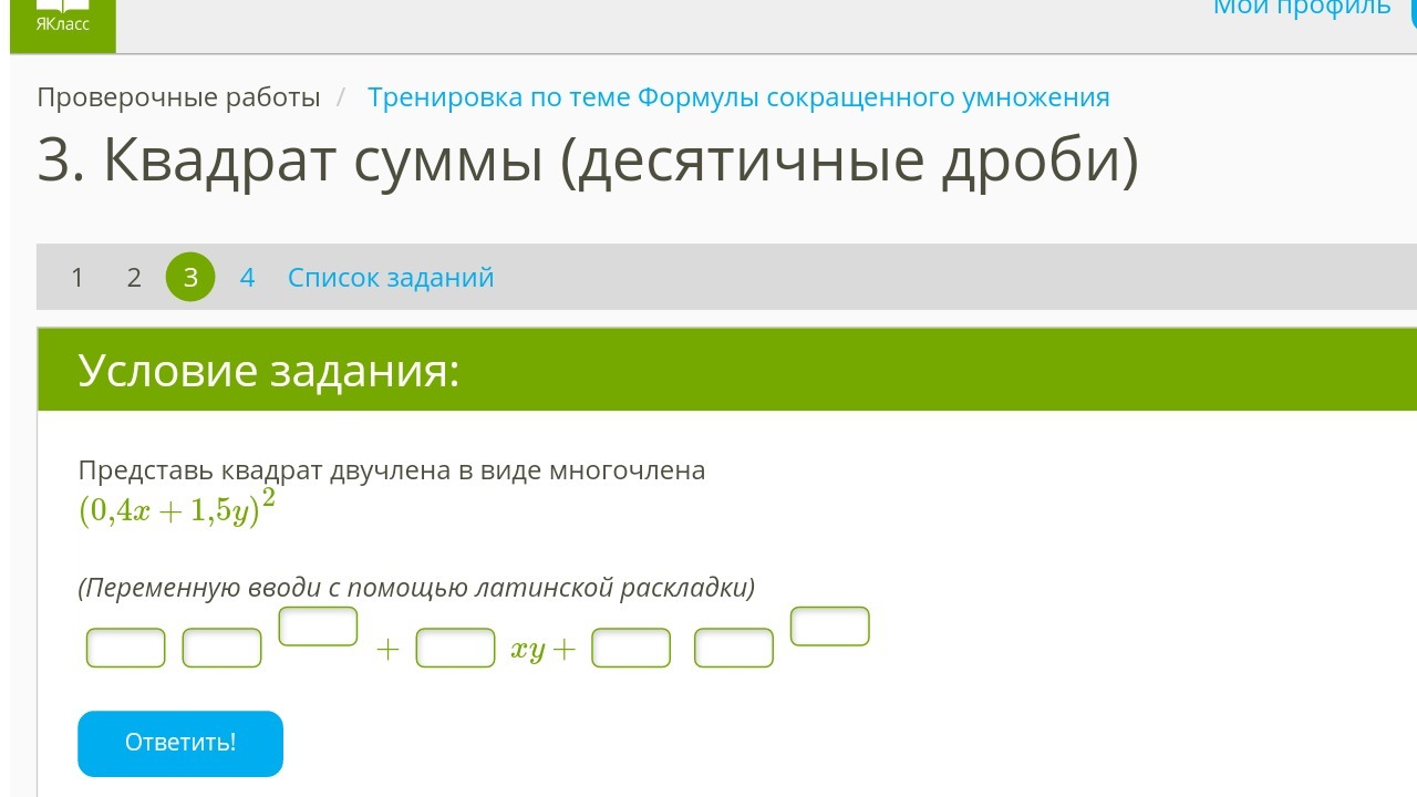 (0,4х+1,5у)²=0,16х²+1,2ху+2,25у²