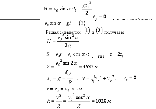 с горы высотой 200 метров произведен выстрел вверх под углом 60 градусов к горизонту с начальной скоростью 100м/с