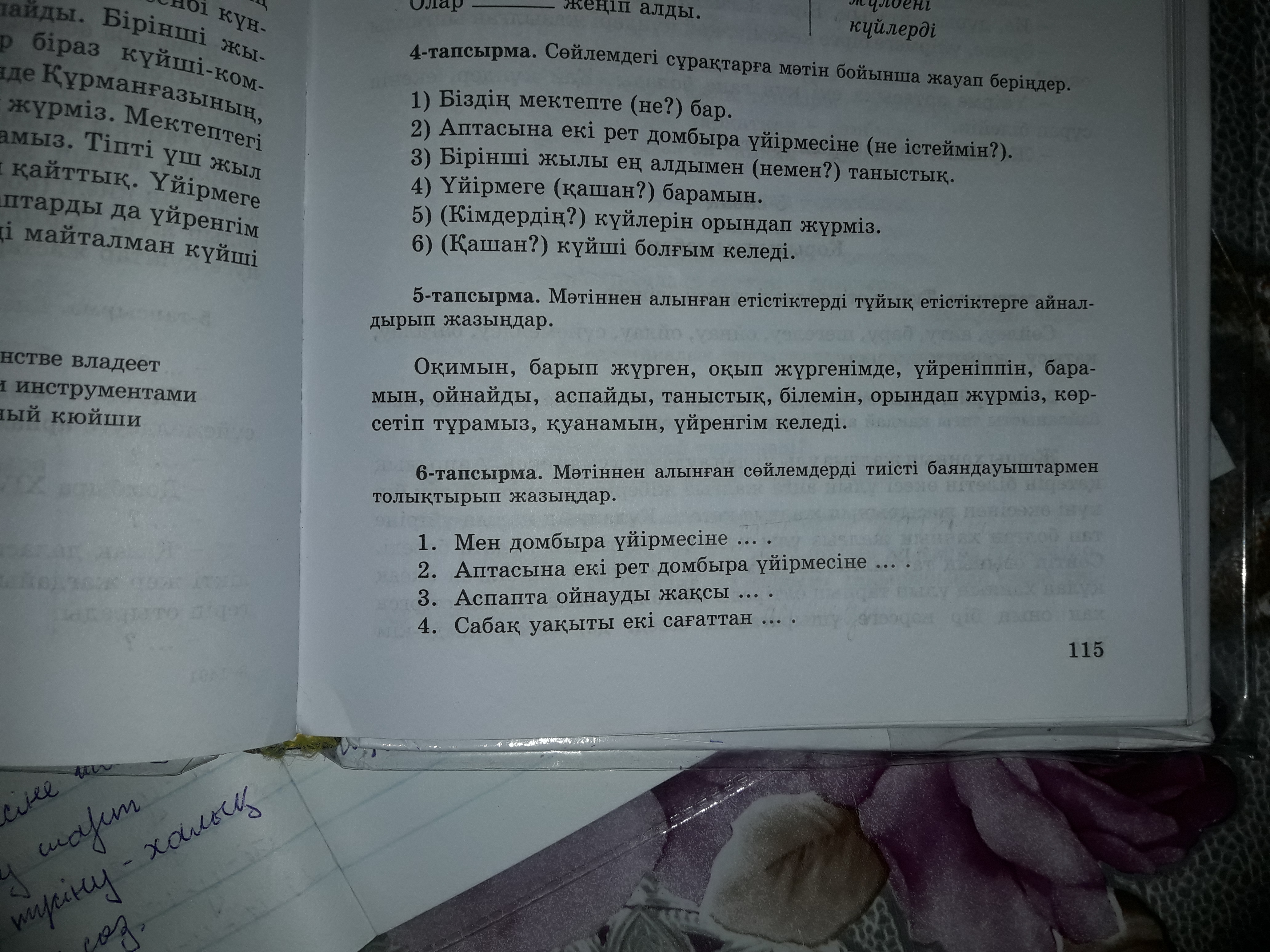 оқу,барып жүру,оқып жүру,үйрену,бару,ойнау,аспау,танысу,білу,орындап жүру,көрсетіп тұру,қуану,үйренгім келу