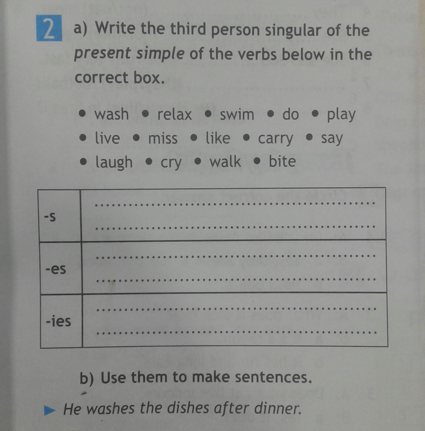 washES relaxES swimS doES playS liveS missES likeS carrIES sayS laughS crIES walkS biteS
