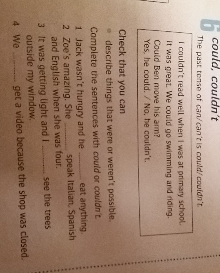 1) could not 2)could 3)could 4)could not