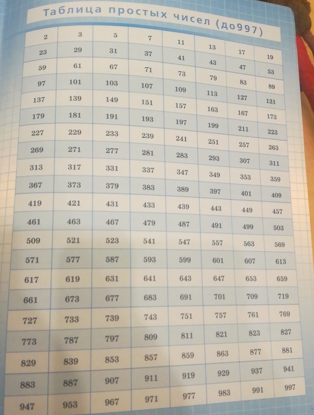 на фото - таблица простых чисел до 997