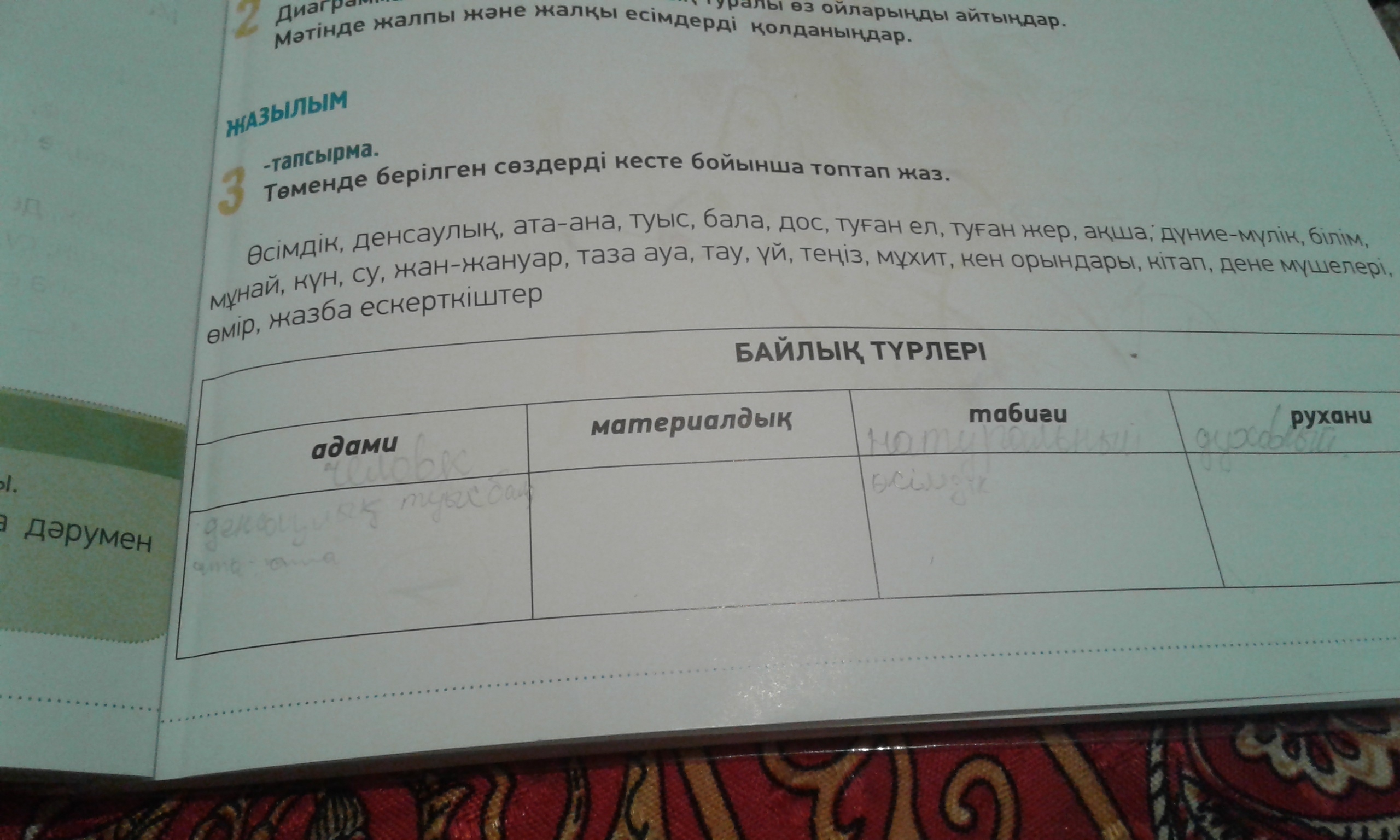 Адами:денсаулық,ата-ана,туыс,бала,дос,дене мүшелері,өмір.