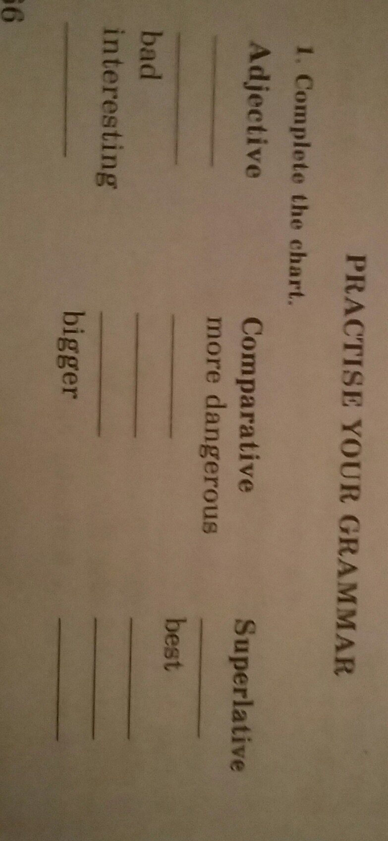 всё по порядку написано:1,2,3Каждое прилагательное написано во всех трёх колонках:1Adjectives, 2Comparative, 3Superlative