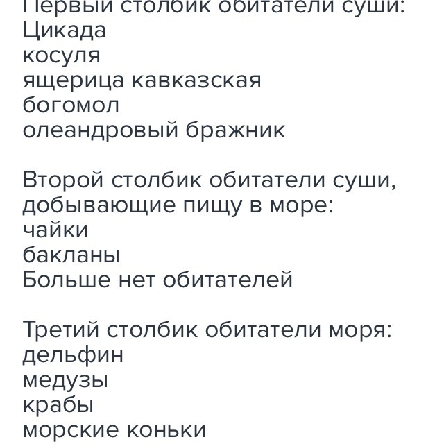 Помогите пожалуйста!!! На тему ЖИВОТНЫЕ ЧЁРНОГО МОРЯ И ЕГО БЕРЕГОВ. Обитатели суши Чёрного моря. Обитатели суши Чёрного моря которые добывают добычу в море. В каждом должно быть по 5 обитателей. Заранее спасибо.