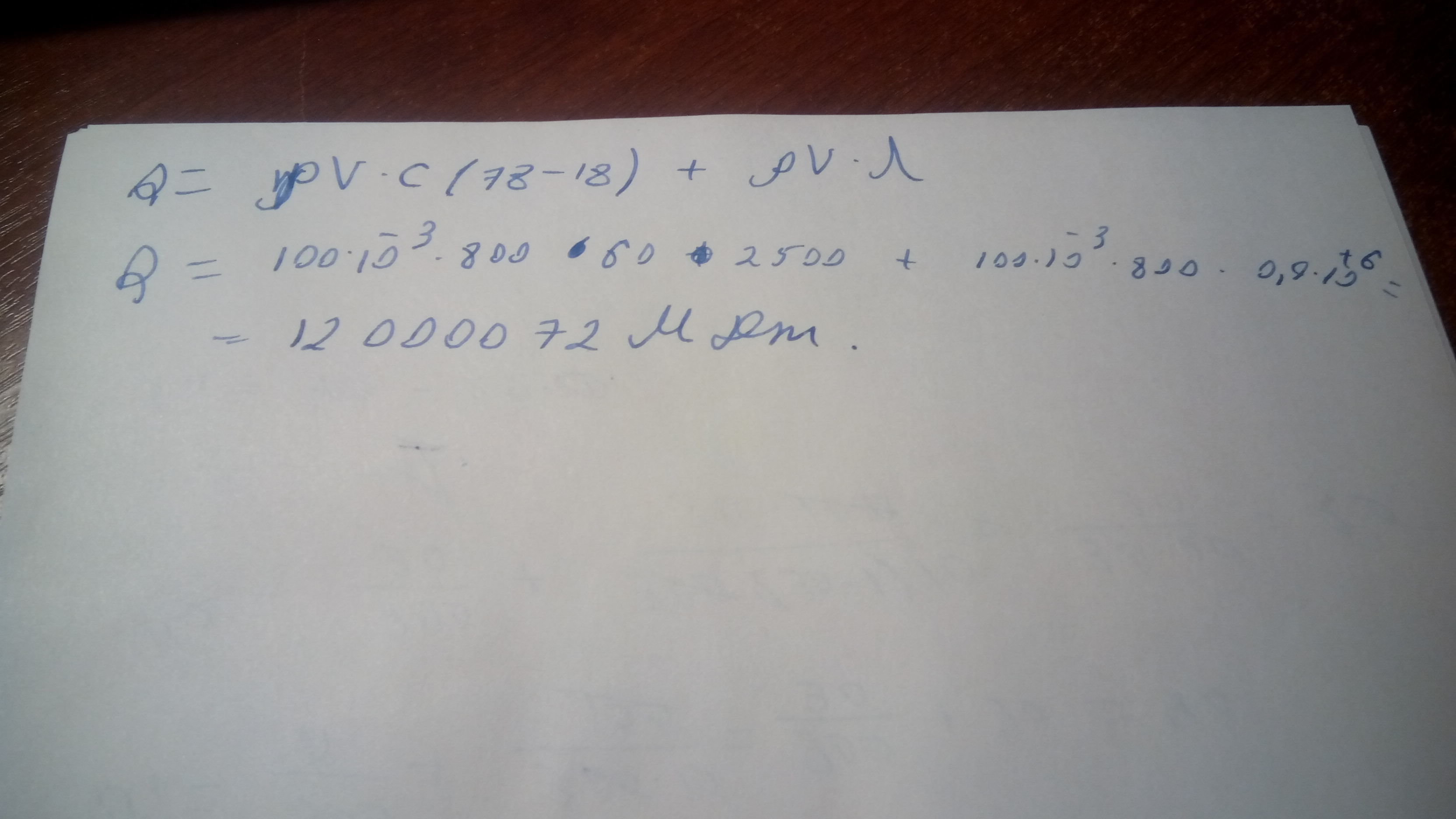 100 мл спирта при температуре 18 градусов было доведено до кипения и испарения. Сколько теплоты для этого потребовалось? Плотность спирта 0,8 г/см3, удельная теплоемкость спирта 2500 Дж/кг*С, теплота кипения спирта 78 градусов, удельная теплота парообразования спирта 0,9*10 ( в 6 степени) Дж/кг.
