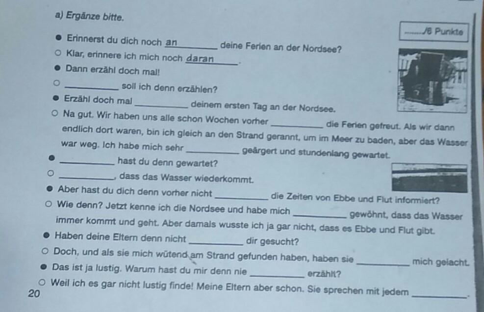 Erzähl doch mal von deinem ersten Tag an der Nordsee. Wir haben uns alle schon Wochen vorher über die Ferien gefreut. Ich habe mich sehr darüber geärgert und stundenlang gewartet.