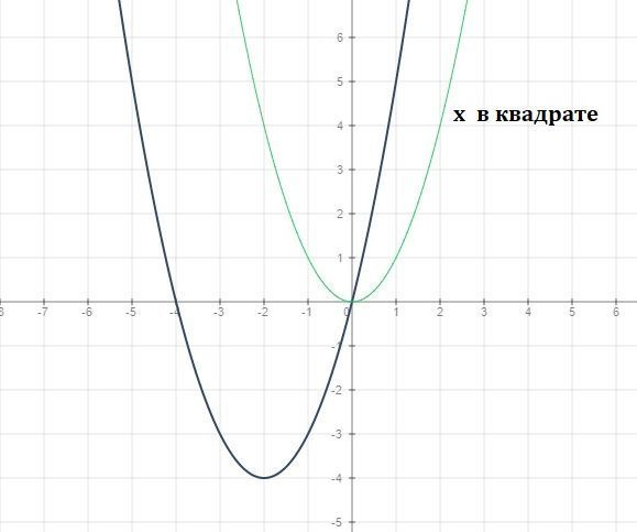 y=(x+2)^2-4 ф. получена из у=х² сдвигом влево на 2 по оси х и сдвигом вниз по оси у на 4 единицы.