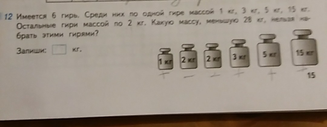 Если написать все возможные суммы, то станет видно, что 14 кг никак не могут быть получены из этого набора.