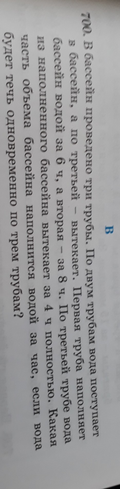 за 1 час вольется воды 1/6 + 1/8 часть бассейна, но выльется 1/4. Получается: 1/6+1/8-1/4 = 1/24