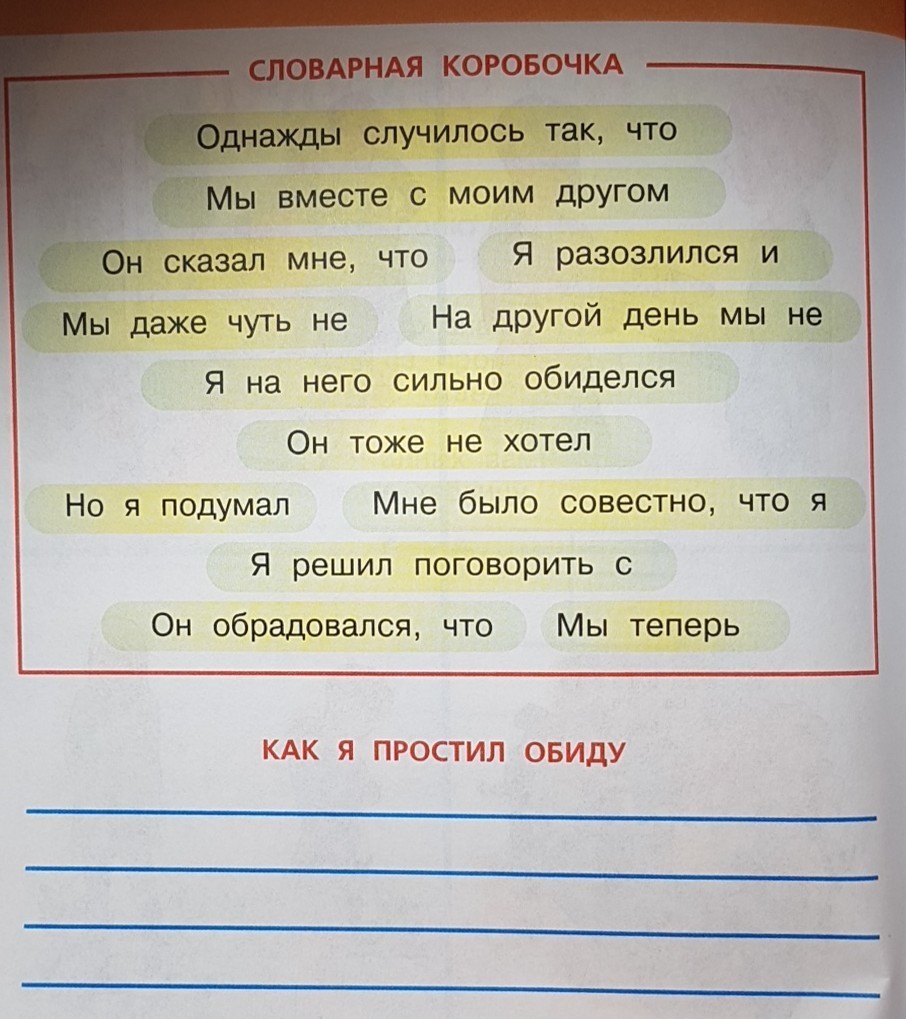 сотавить и написать рассаказ о том "как я простил обиду" (про ссору с другом)