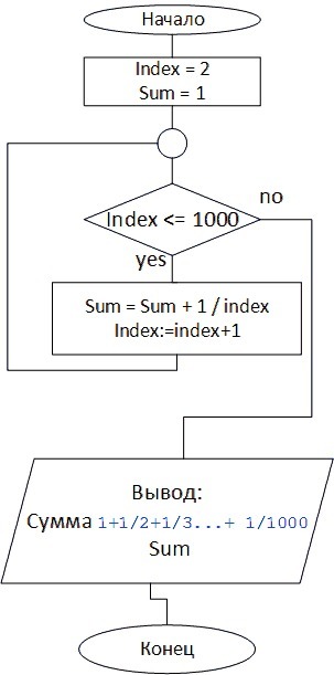 Составить алгоритм подсчета суммы s первых 1000 членов гармонии