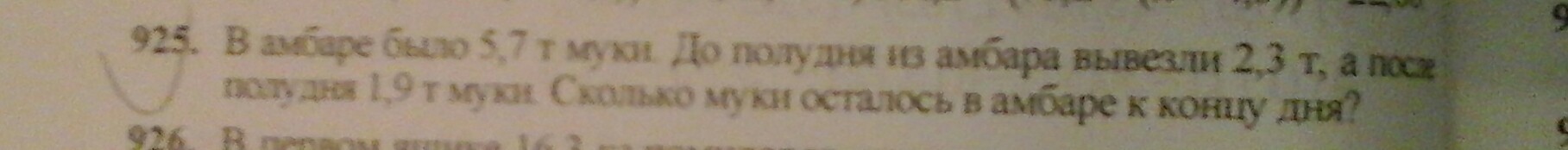 5.7т-2.3т-1.9т=1.5т вот 1.5 это то что осталось в конце дня