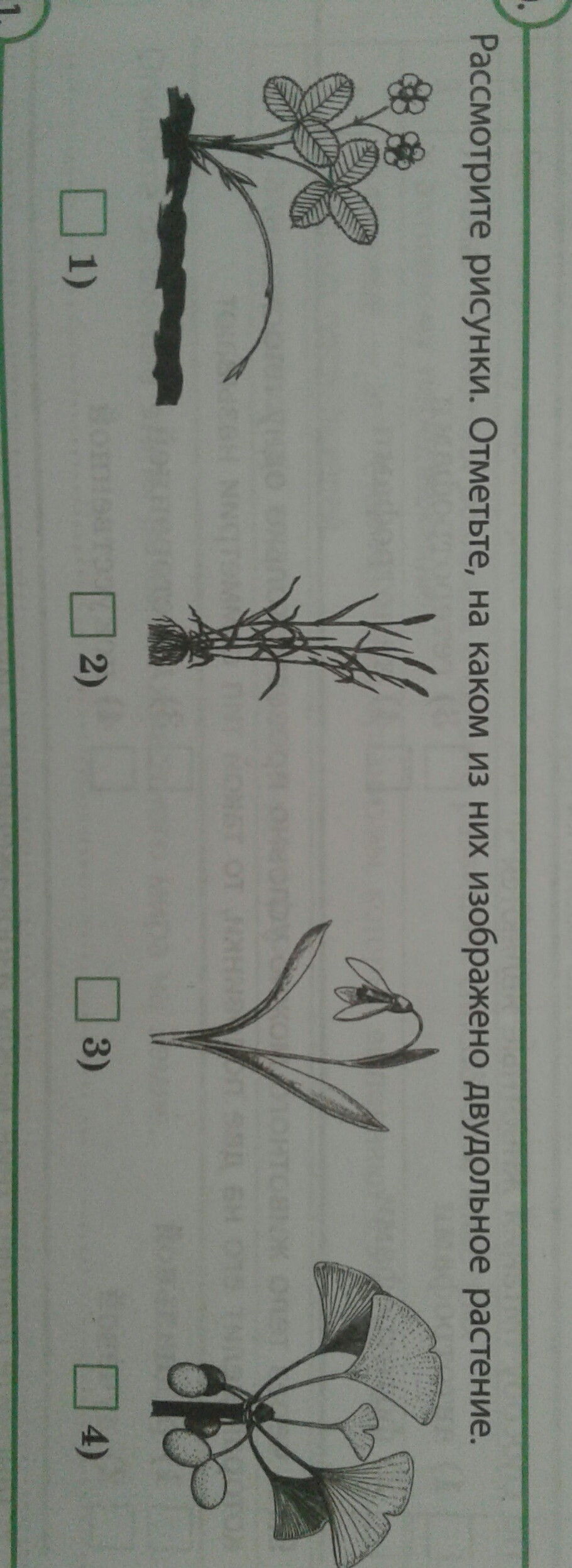Рассмотрите рисунки. Отметьте, на каком из них изображено двудольное растение.